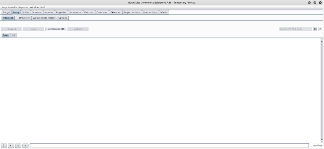 Proxy -> Intecept kısmı sunuculara giden istekleri durdurup görebildiğimiz kısım. Forward ile paket gönderilir, Drop ile ise droplanır. Giden isteklerin durdurulabilmesi için ‘Intercept on’ seçilmiş olmalıdır.